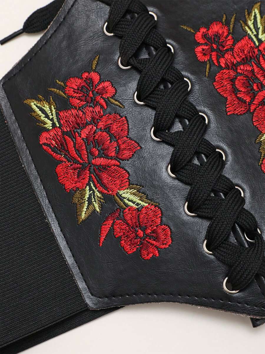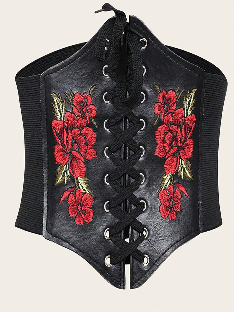 Goth 1pc Women Floral Embroidery Lace Up Front Corset Belt