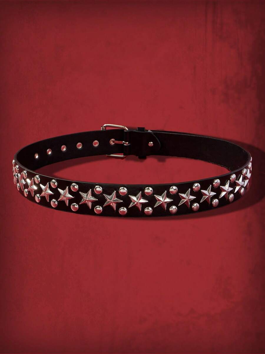 Goth 1pc Women's Black Pentagram Shaped Rivet Decorated Belt For Daily Use