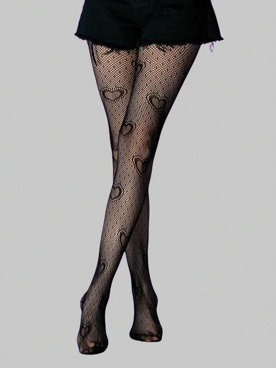 Goth 2 Pairs Women's All Seasons Black Heart & Polka Dot Patterned Fishnet Tights Set