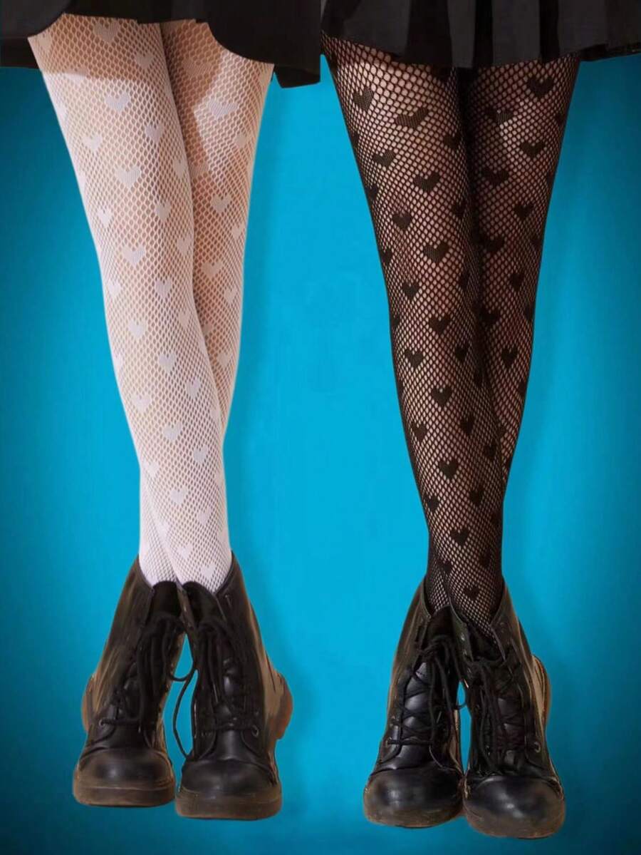 Goth 2pairs Black & White Heart Patterned Fishnet Tights