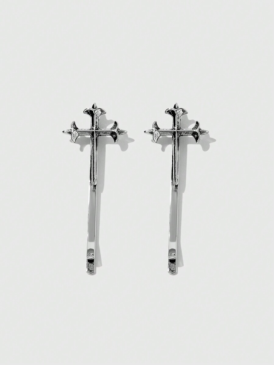 Goth 2pcs Women Cross Decor Zinc Alloy Hair Clip