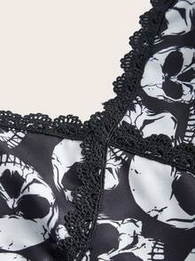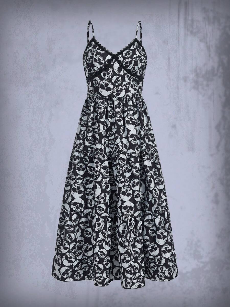 Goth Allover Skull Print Contrast Lace Cami Dress