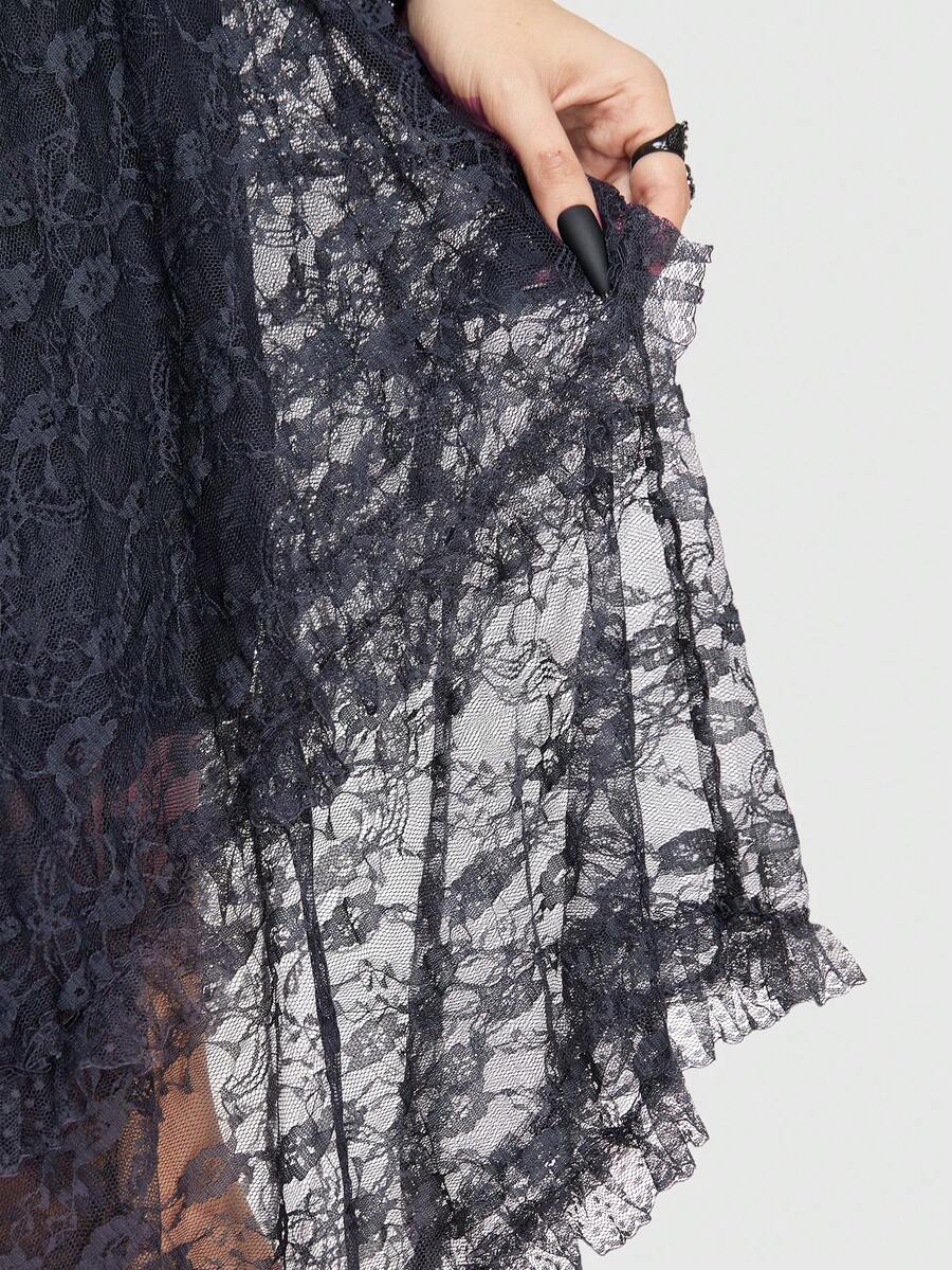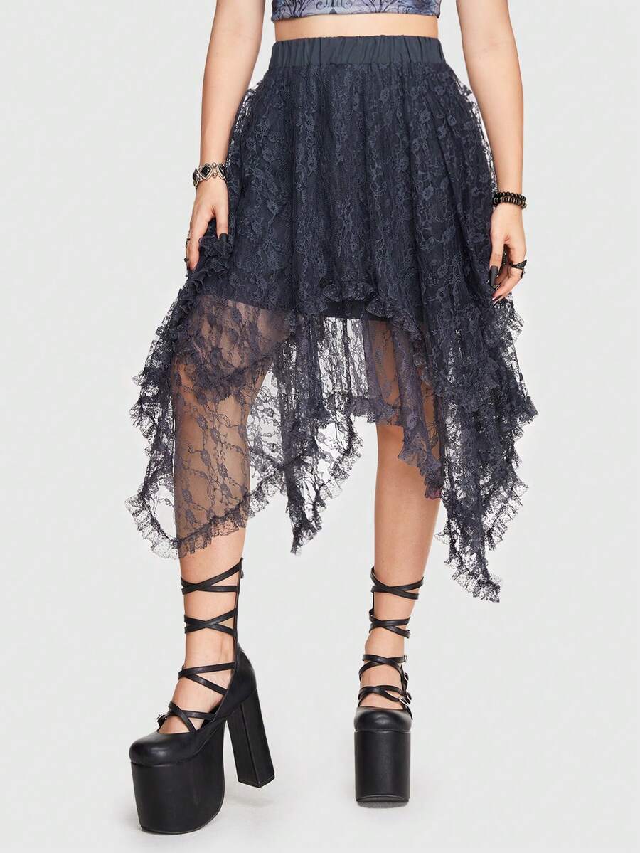 Goth Asymmetrical Hem Lace Skirt