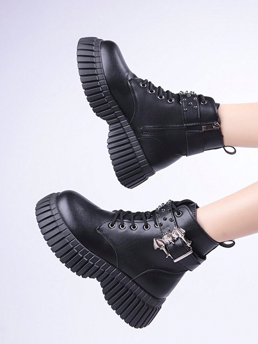 Goth Black Buckle Design Women's Ankle Boots And Short Boots