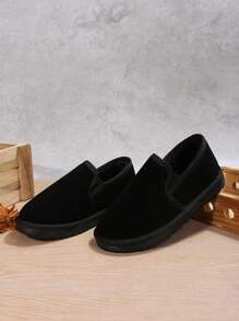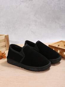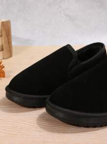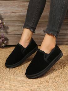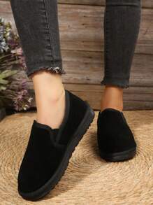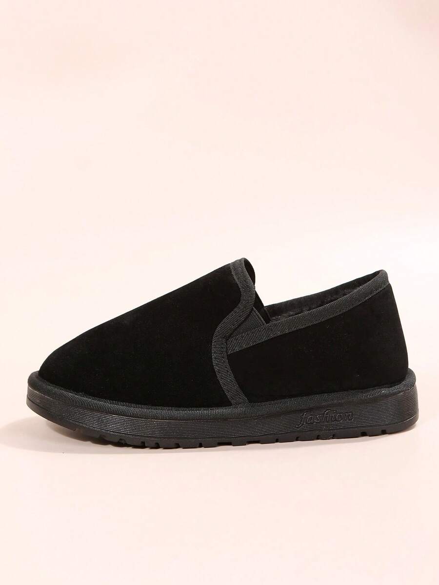 Goth Black Flat Heel Loafers Slip-On Shoes For Women, Thermal Lined, Winter