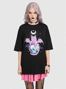 Goth Cartoon Graphic Drop Shoulder Tee, School
