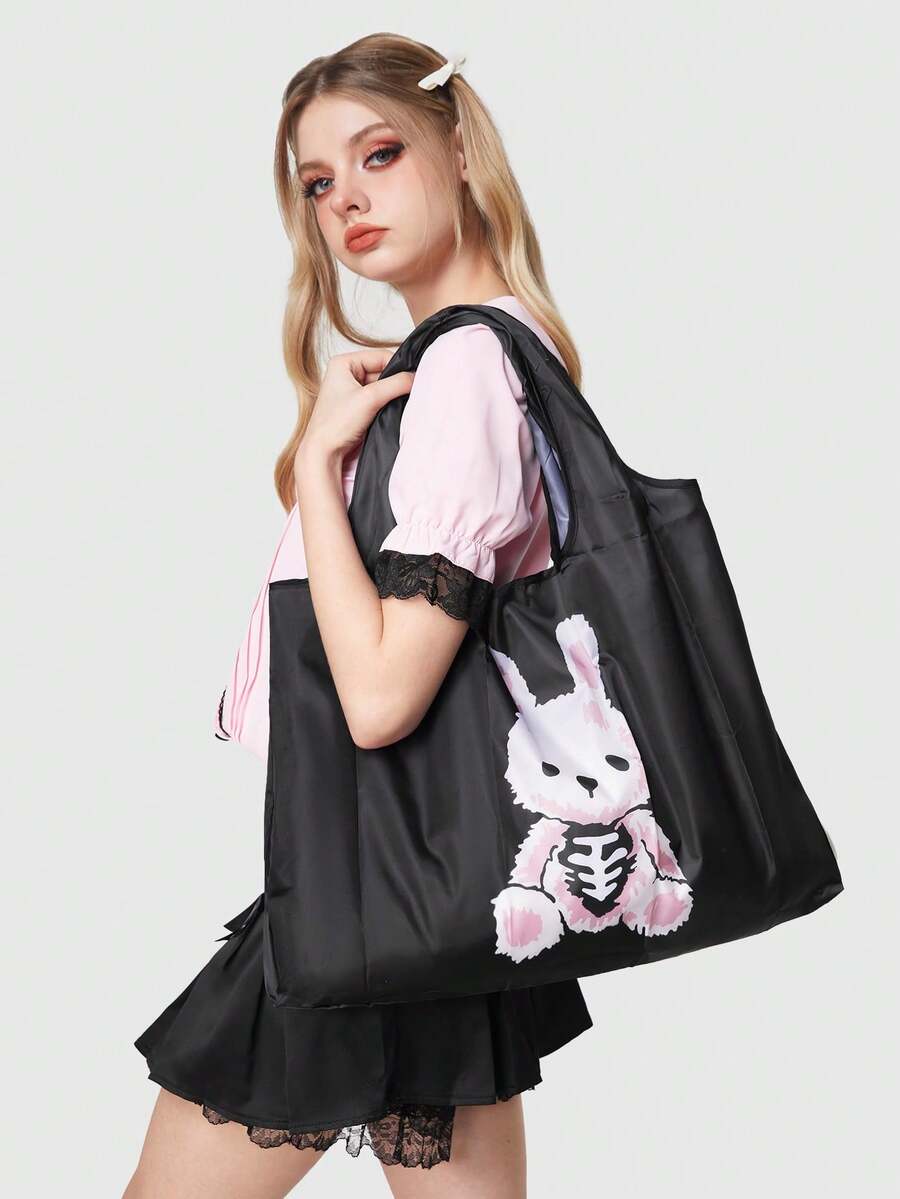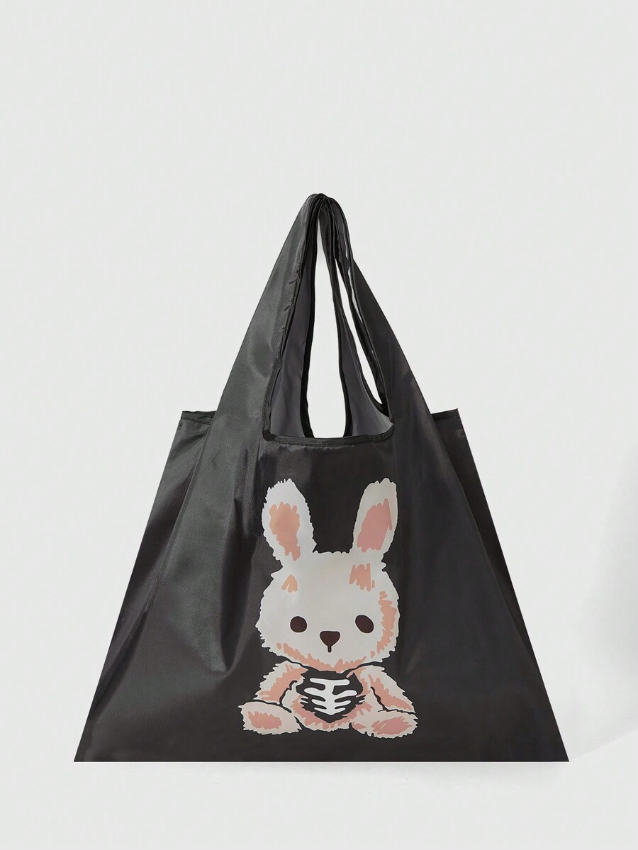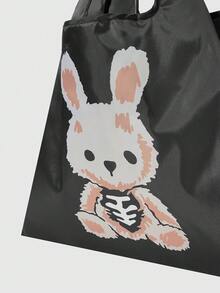Goth Cartoon Rabbit Print Portable Tote Bag For Women, Waterproof & Scratch-resistant, Style 204423