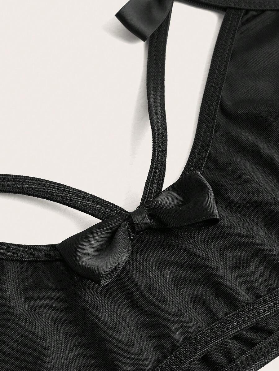 Goth Contrast Lace Cut Out Bow Decor Lingerie Set