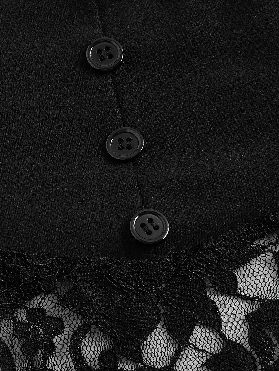 Goth Contrast Lace Flounce Sleeve Peplum Blouse