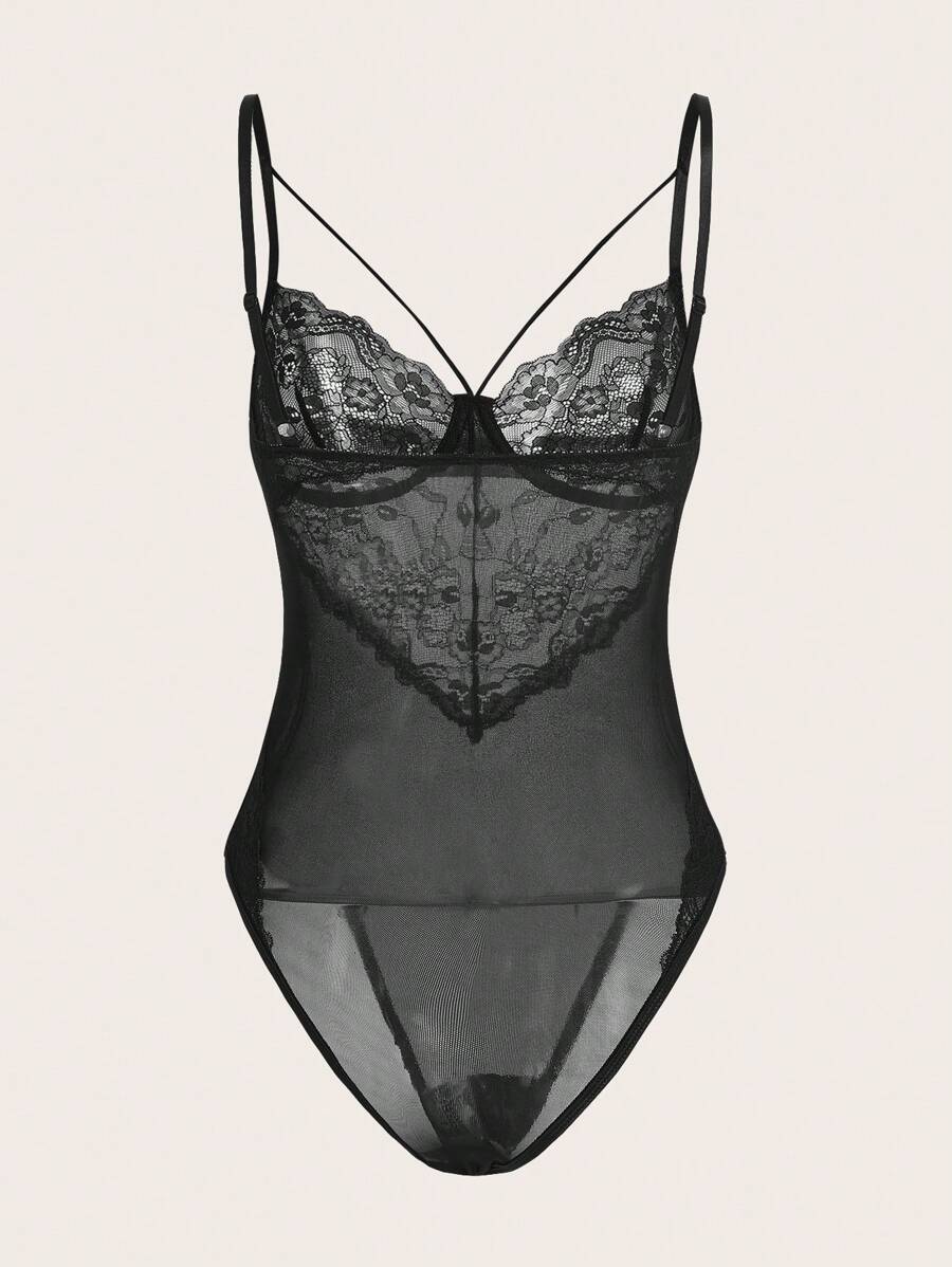 Goth Contrast Lace Mesh Teddy Bodysuit