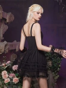 Goth Contrast Mesh Hook And Eye Cami Dress