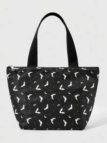 Dark Bat Print Fashion Goth Style Insulated Lunch Tote Bag, Large Capacity & Portable