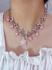 Goth European And American Style Fashionable Versatile Designed Pink Star Pendant Necklace