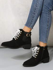 Goth European And American Style Women'S Suede Short Boots, Wedge Heel Lace-Up Fashion Boots With Color Block Design