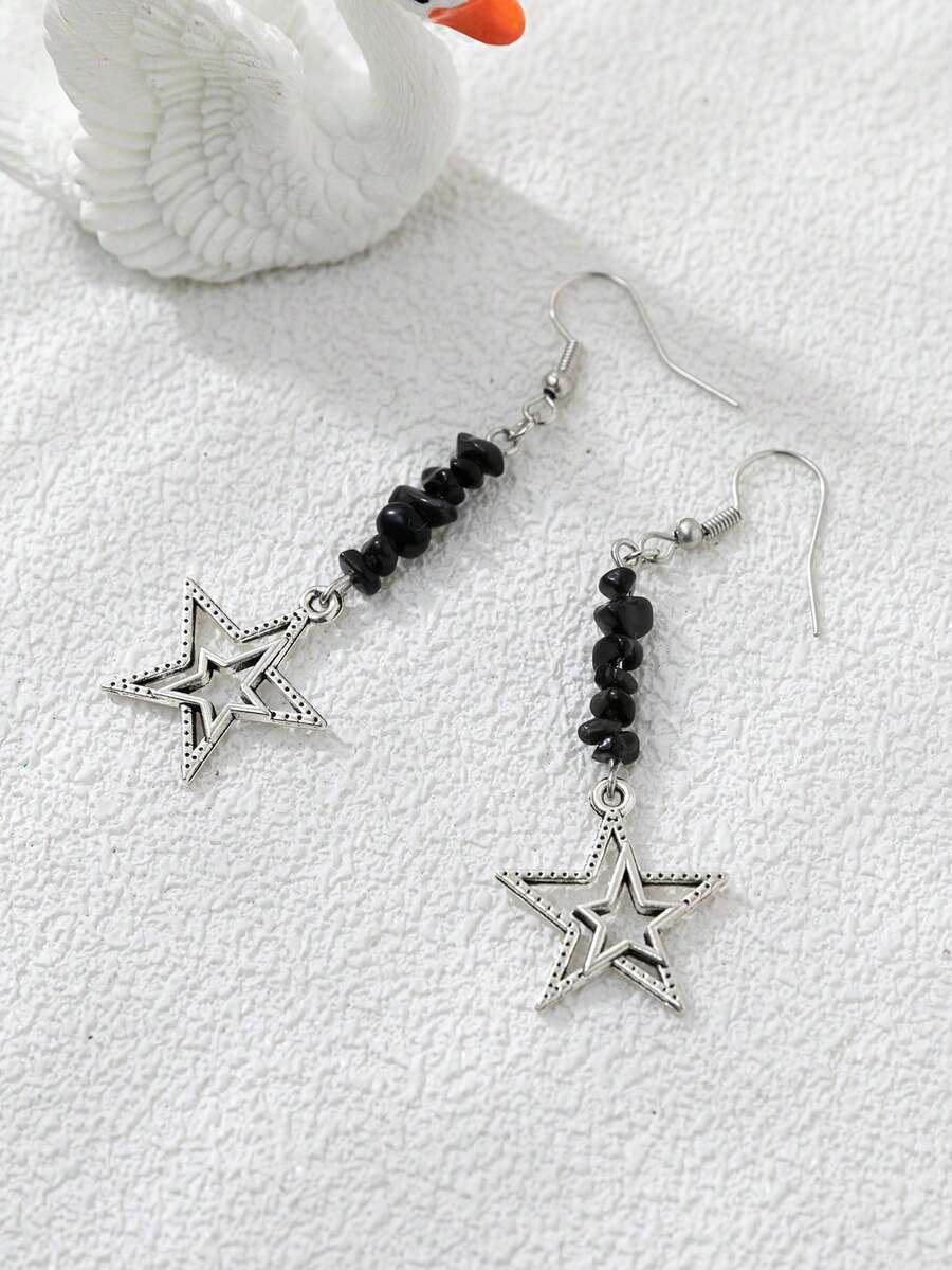 Goth Exquisite Black Crystal Five-pointed Star Shaped Pendant Earrings