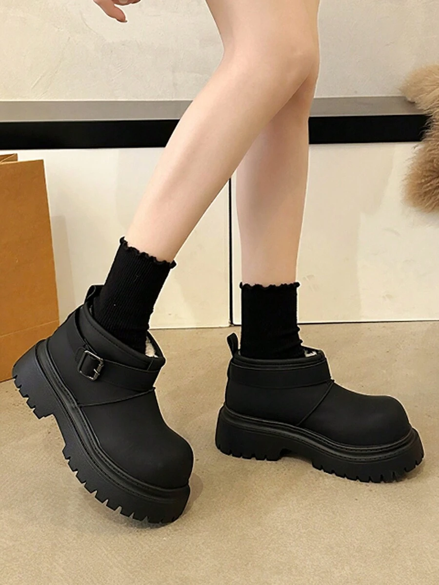 Goth Fashionable Versatile Vintage British Style Cool Boots Short Snow Boots For Warmth & Comfort