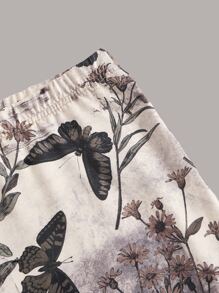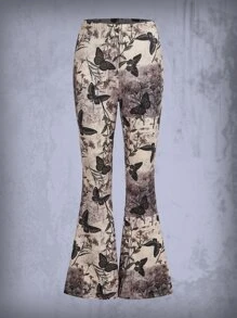Goth Floral & Butterfly Print Flare Leg Trousers
