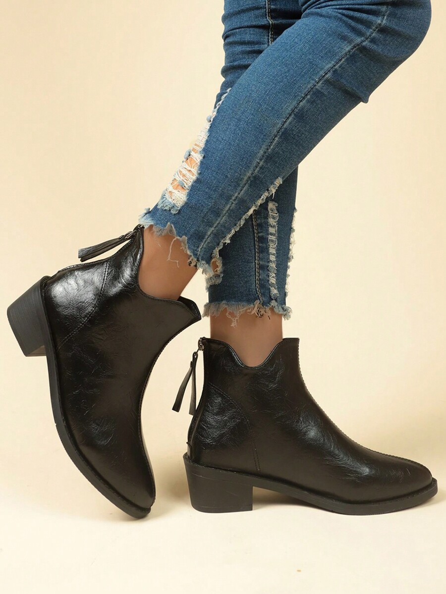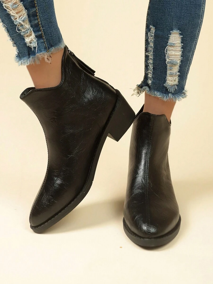 Goth French Vintage Style Autumn & Winter New Arrival British Wind Thick-heeled Short Boots, Pointed Toe, Fashionable All-match Boots With Back Zipper