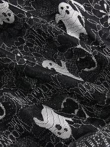 Goth Gothic Dark Halloween Ghost Lace Print Plus Size Sexy Lingerie Set For Women