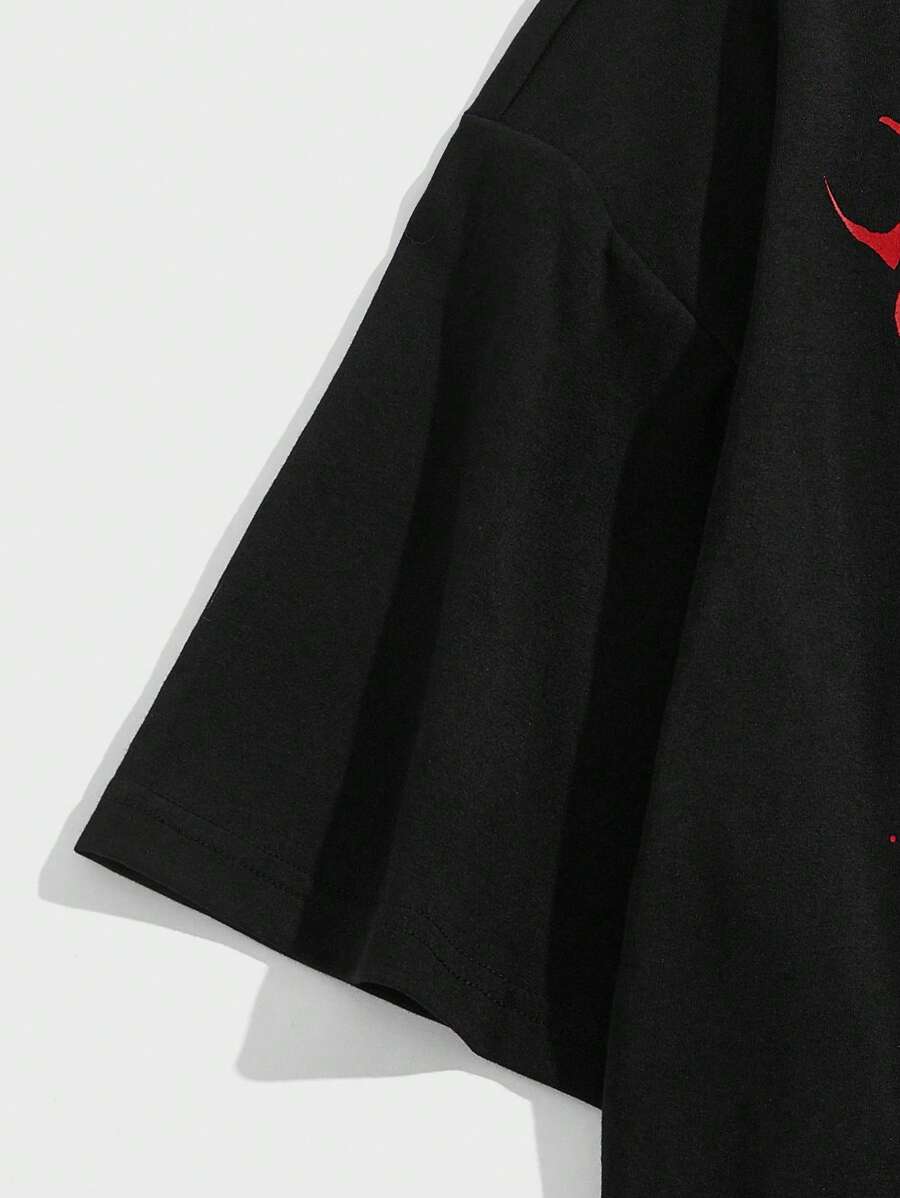 Goth Men Cotton Letter & Skull Print Tee, School