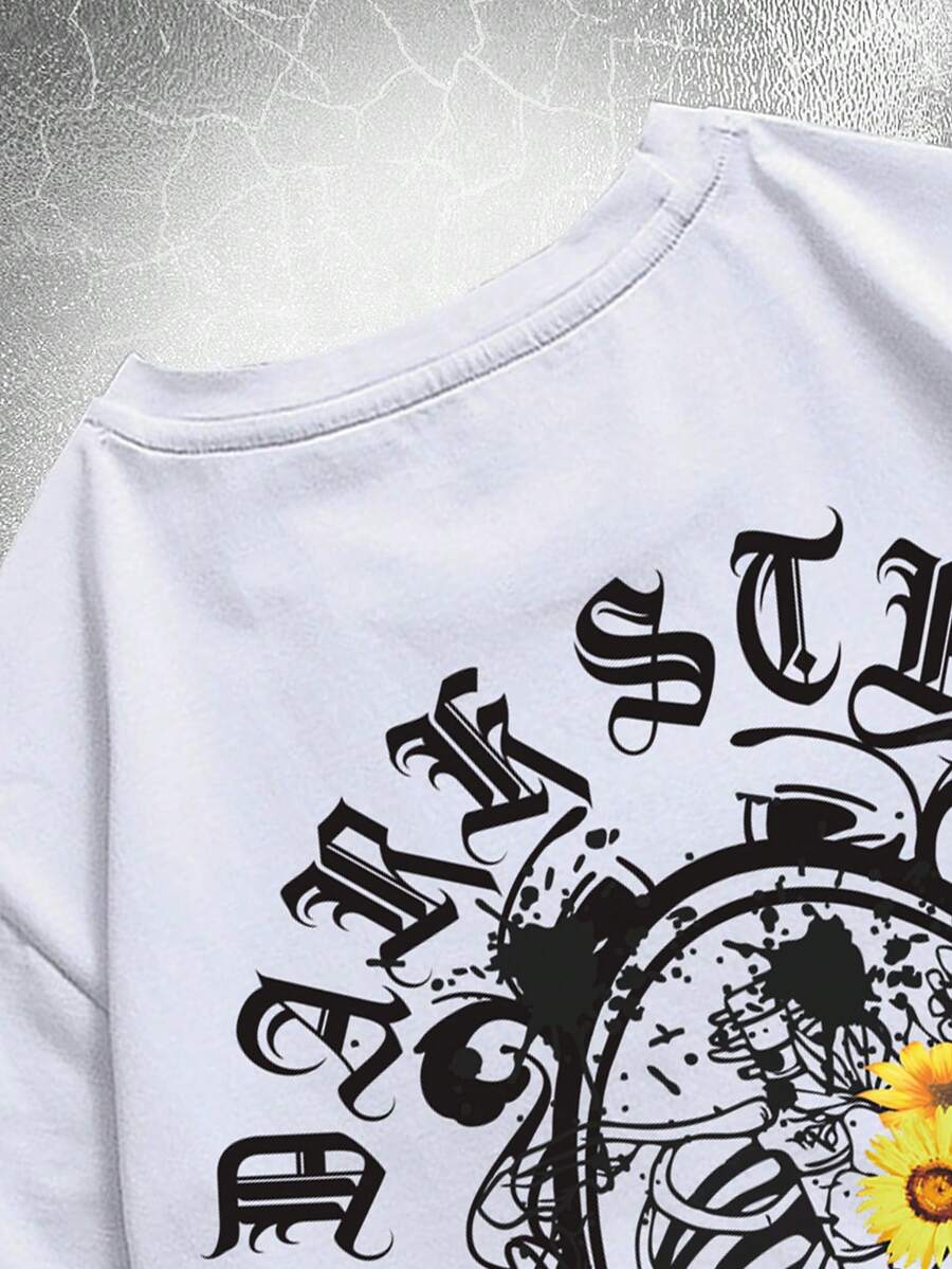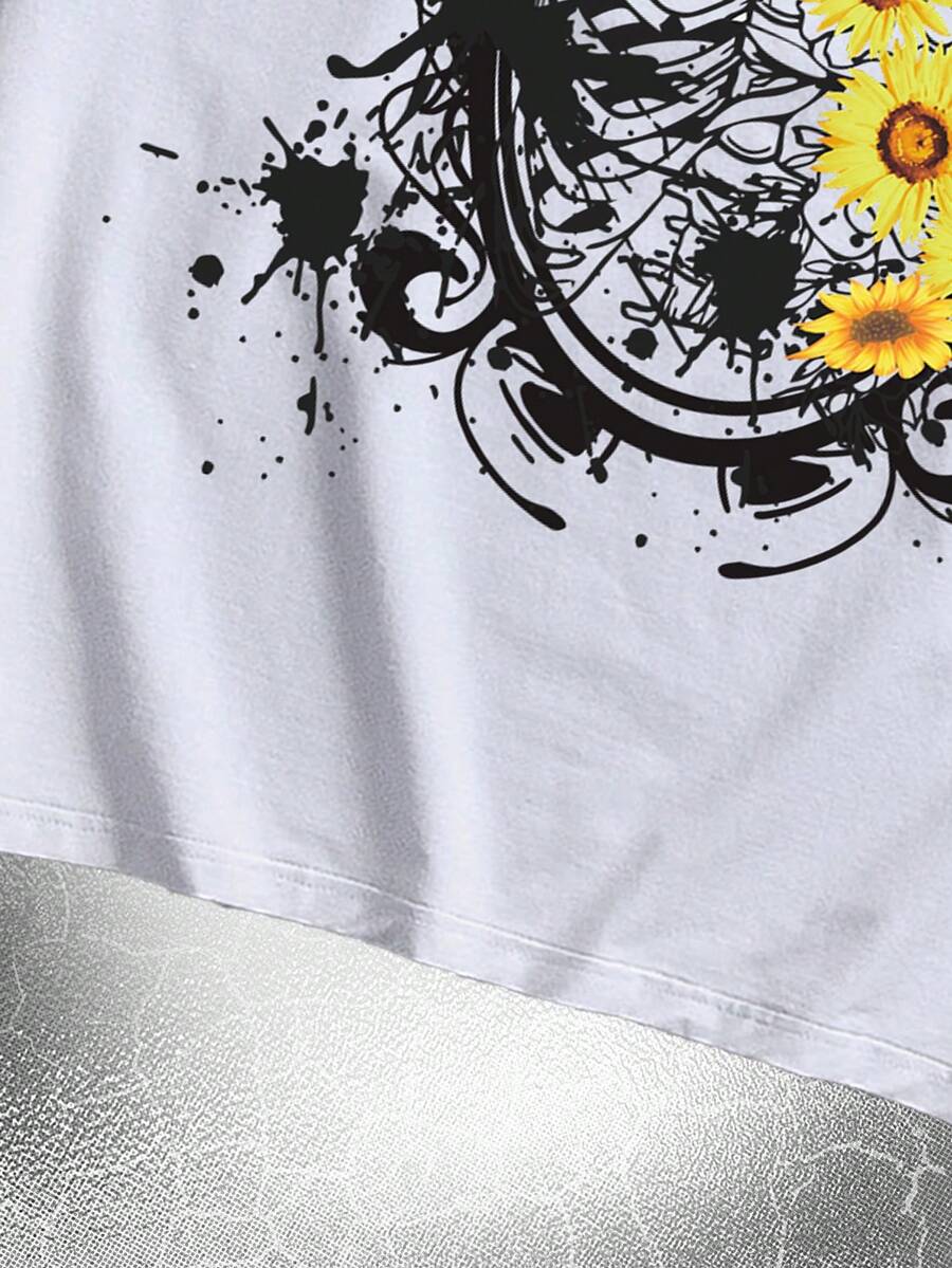 Goth Guys Floral & Skeleton Print Tee