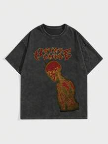 Goth Guys Letter & Skull Print Drop Shoulder Tee