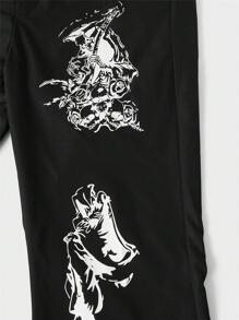 Goth Guys Skull Graphic Flare Leg Pants