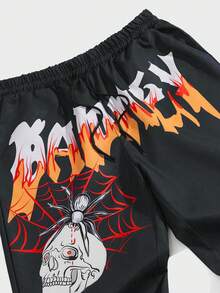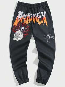 Goth Guys Skull Letter Graphic Drawstring Waist Pants