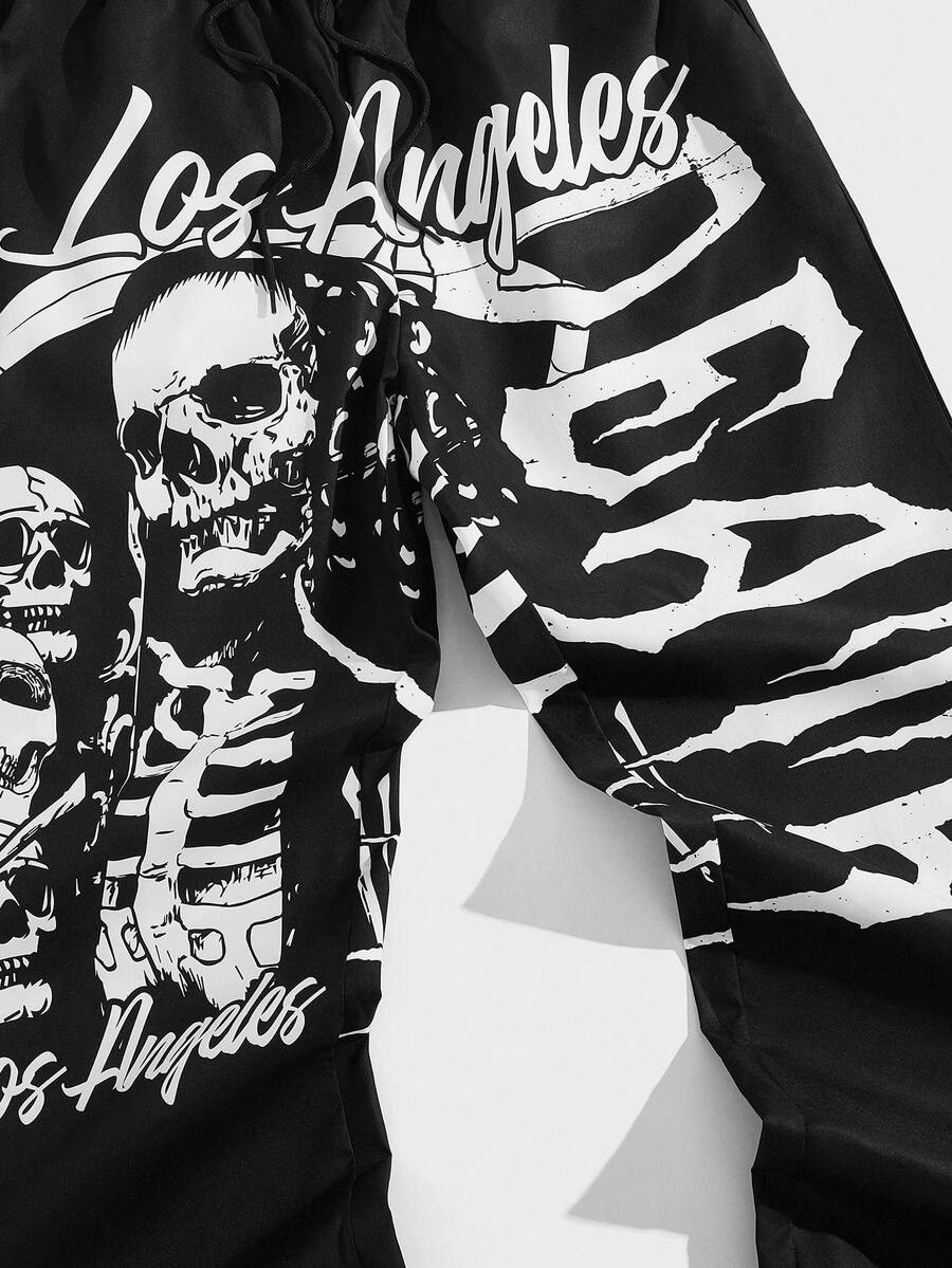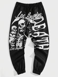 Goth Guys Skull & Letter Graphic Drawstring Waist Pants