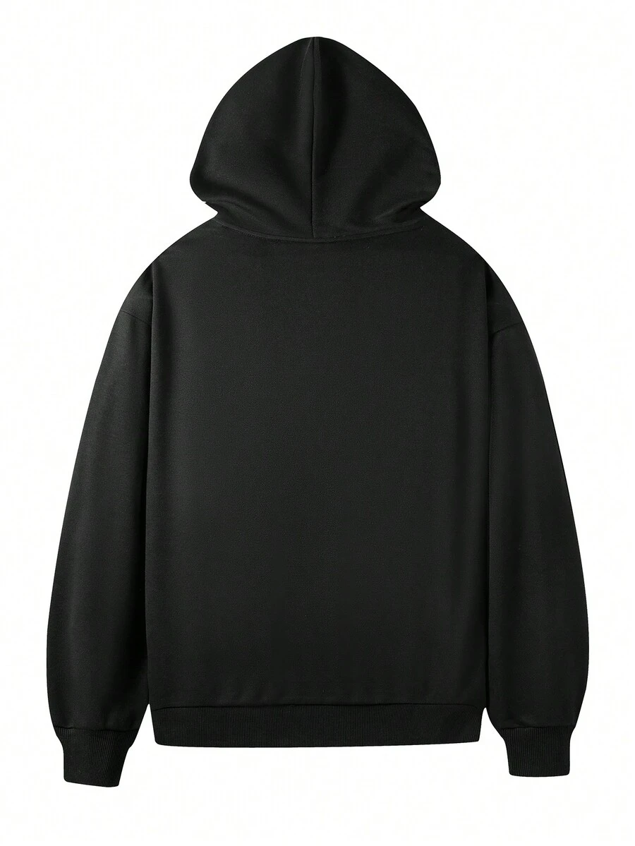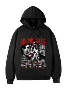 Goth Guys Slogan & Figure Graphic Drawstring Thermal Hoodie