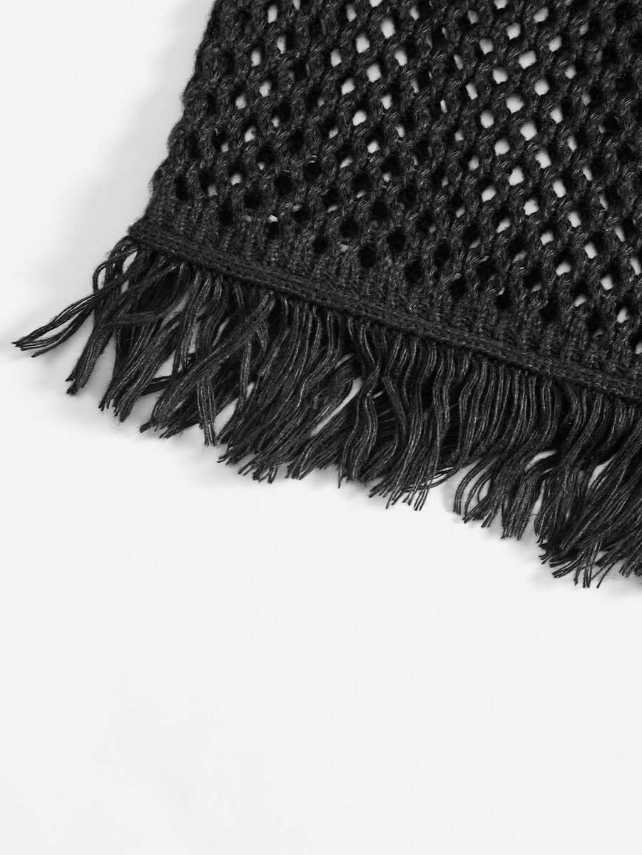 Goth Hollow Out Fringe Hem Tie Front Knit Skirt