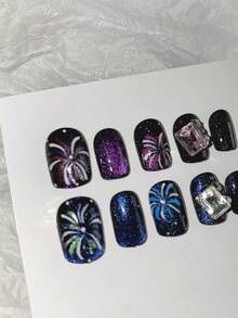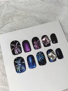 Goth (In Stock) 10pcs Short Nail Fireworks Faux Nail Art Tips With Jelly Glue