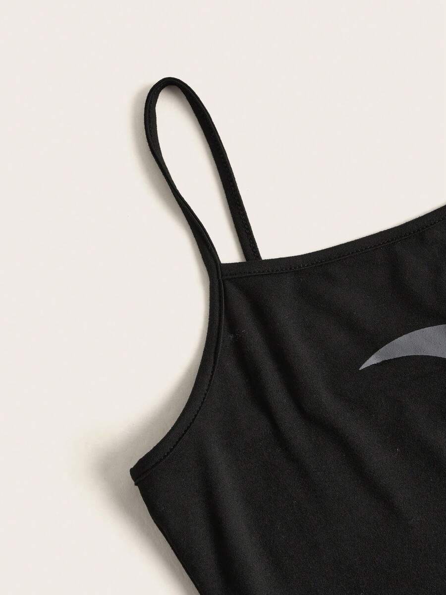 Goth Lace Tie Front Top & Moon Print Cami Dress