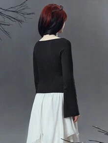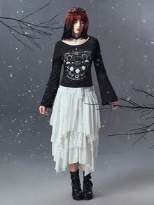 Goth Letter & Moon Print Flare Sleeve Raglan Sleeve Tee