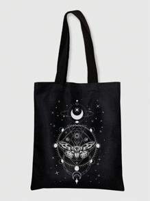 Goth Medium Shopper Bag Casual Butterfly & Moon Graphic For Shopping
