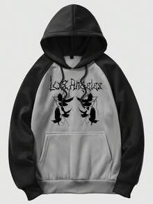 Men Contrast Color Gothic Print Long Sleeve Sweatshirt