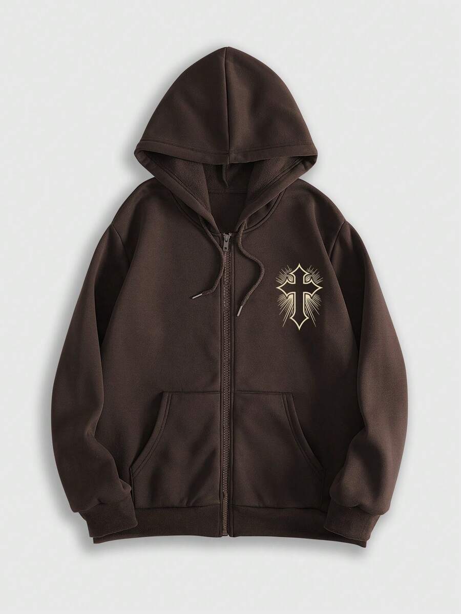 Goth Men Wings Print Kangaroo Pocket Drawstring Thermal Hoodie