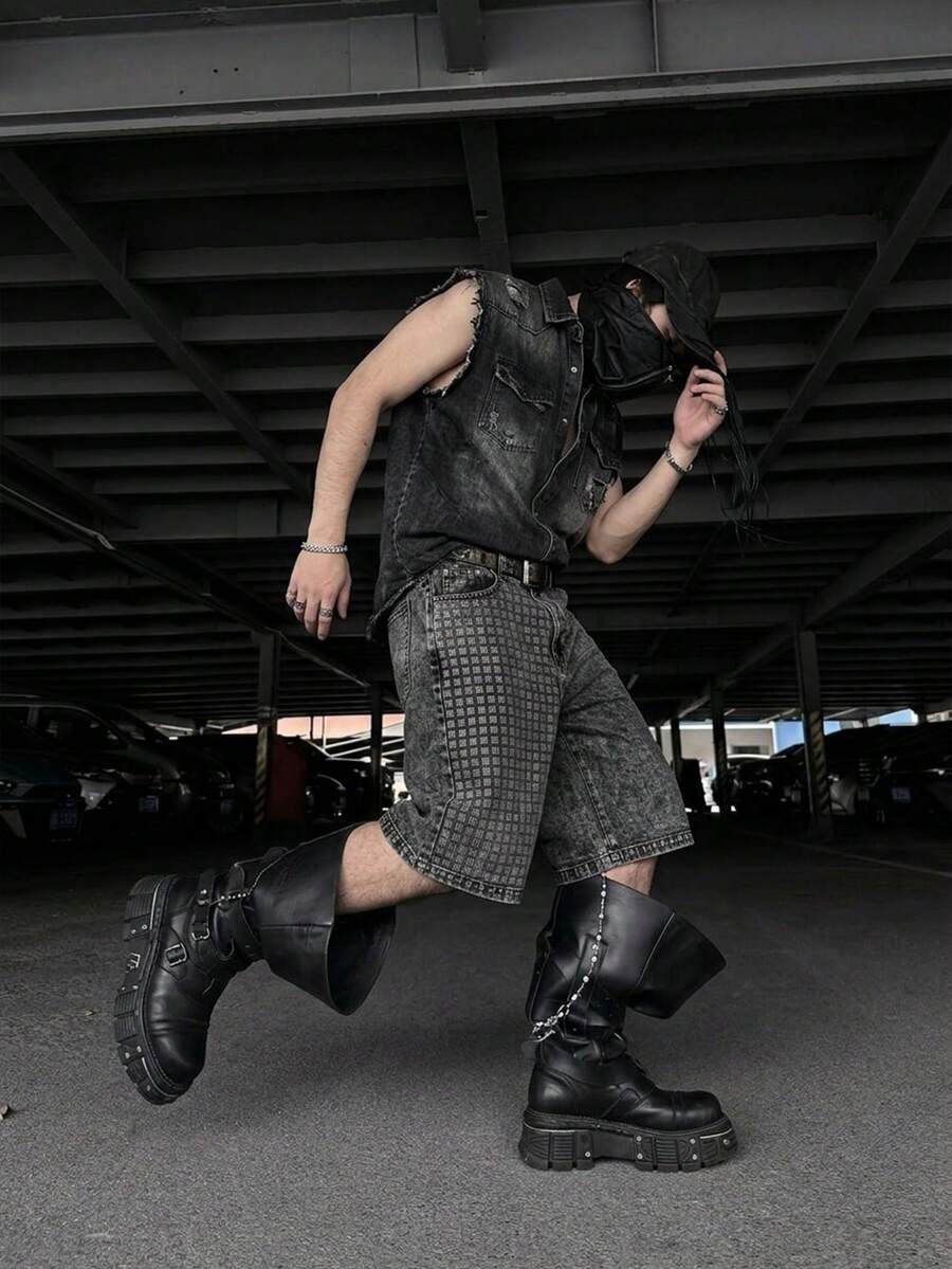 Goth Men's Black & Grey Washed Denim Shorts