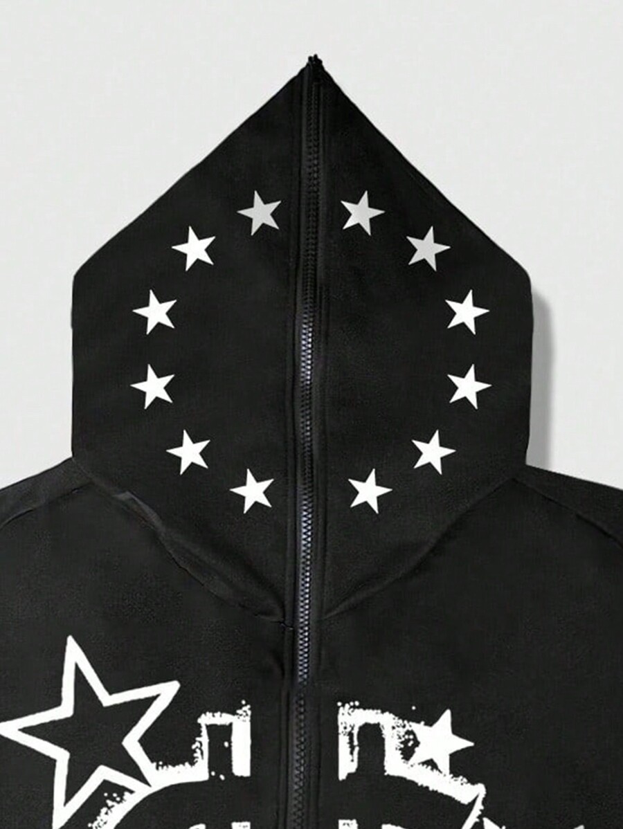 Goth Men's Black Hooded Sweatshirt With Dollar Sign Print And Zipper