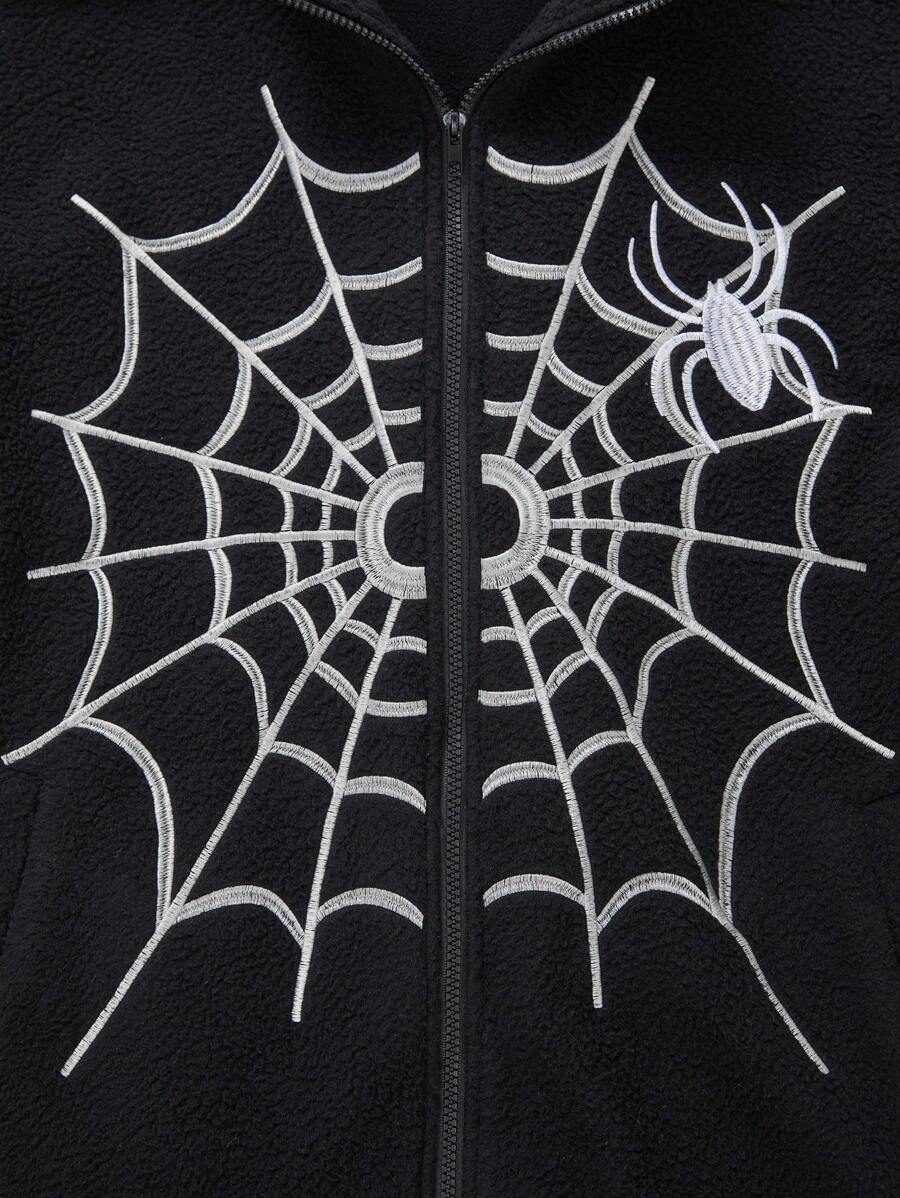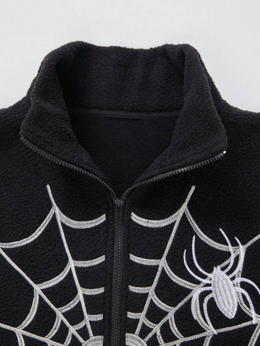 Goth Men's Casual Front Zip Up Jacket With Spider Print, Minimalist Design, Halloween