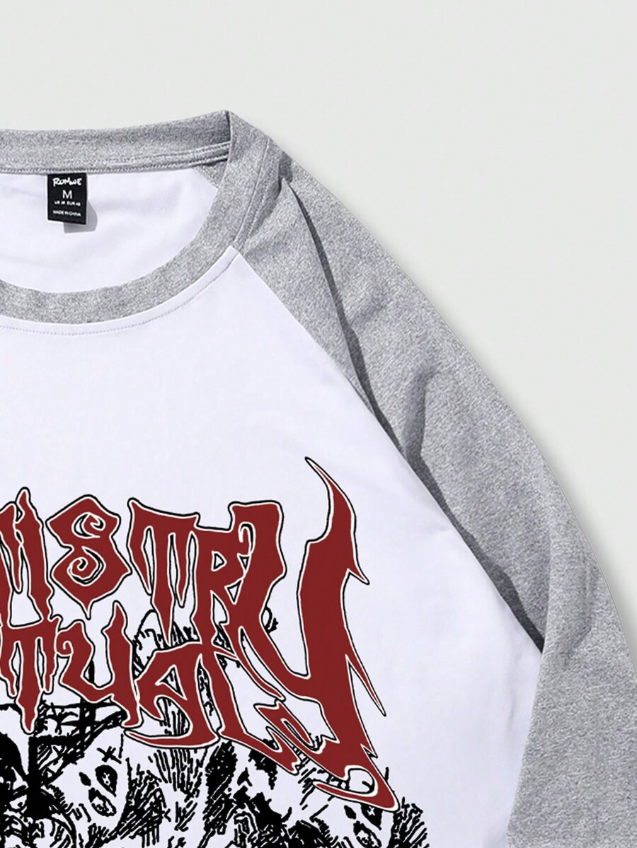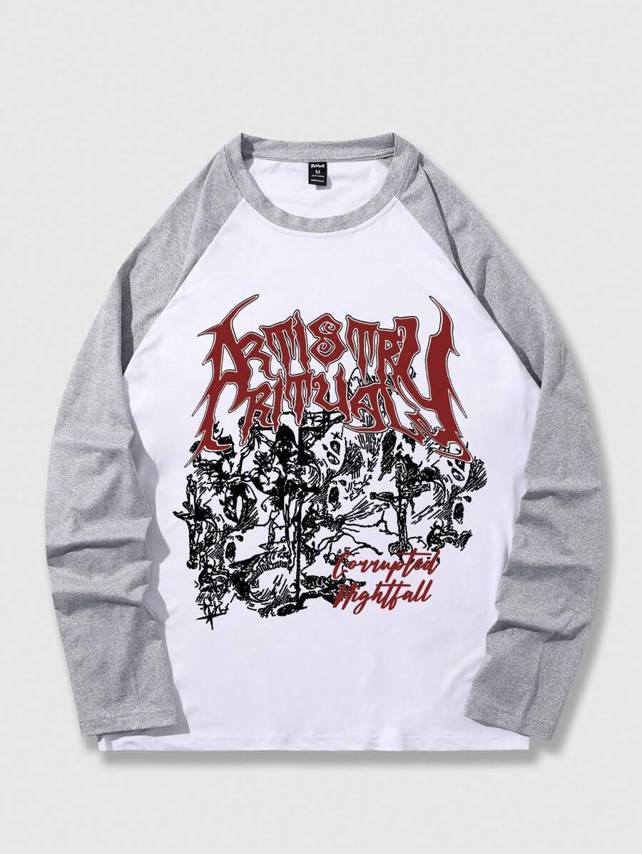 Goth Men's Casual Letter Print Raglan Long Sleeve T-shirt