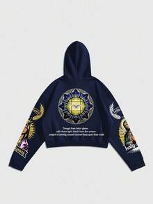 Goth Men's Printed Open Front Hoodie, Loose Cropped Style, Fall