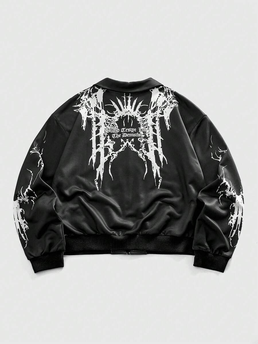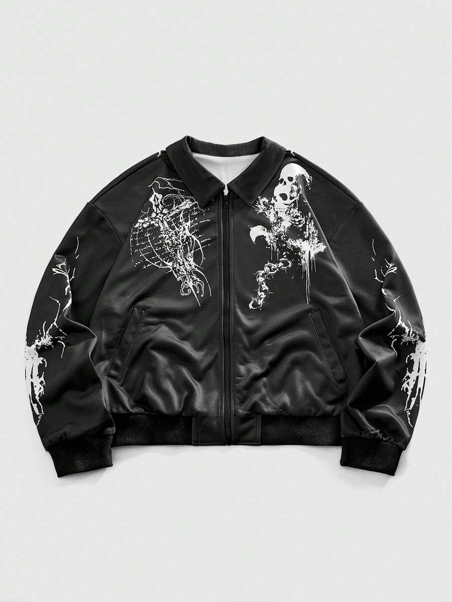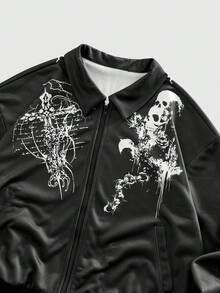 Goth Men's Skull Print Zip-Up Collar Jacket