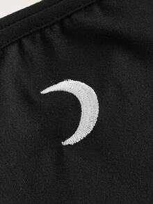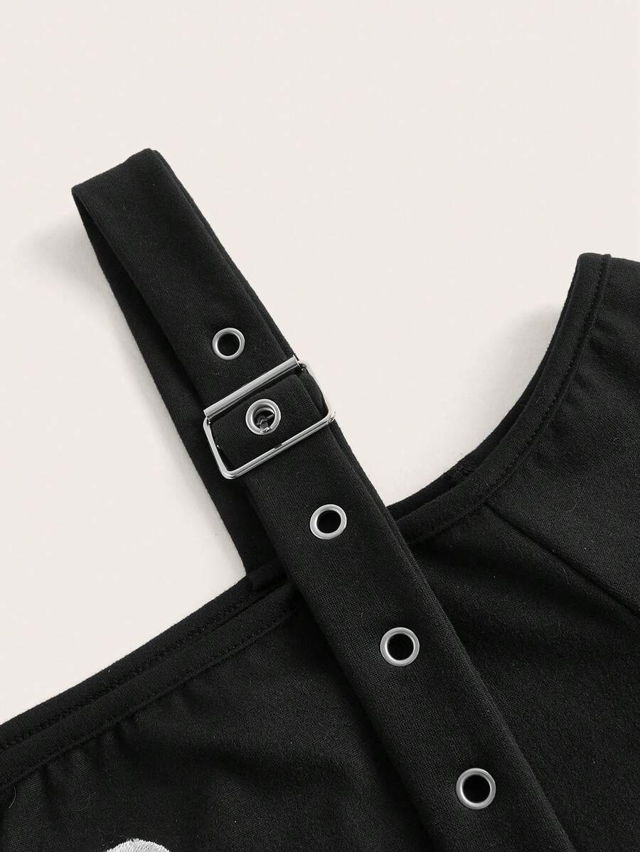 Goth Moon Graphic Grommet Eyelet Cold Shoulder Tee