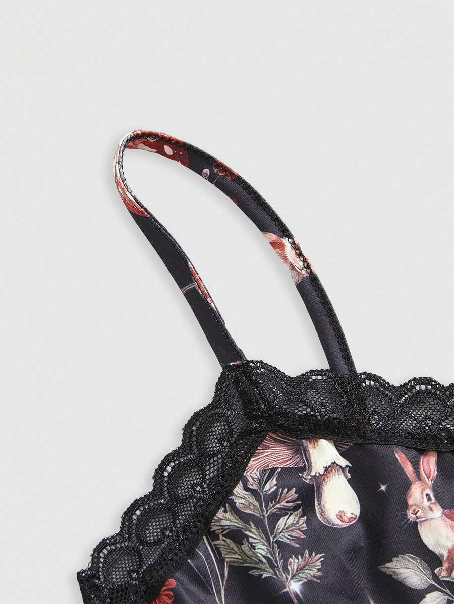 Goth Mushroom, Floral, Plant, Rabbit, Deer All-Over Print Camisole & Shorts Lounge Set, Casual Sleepwear
