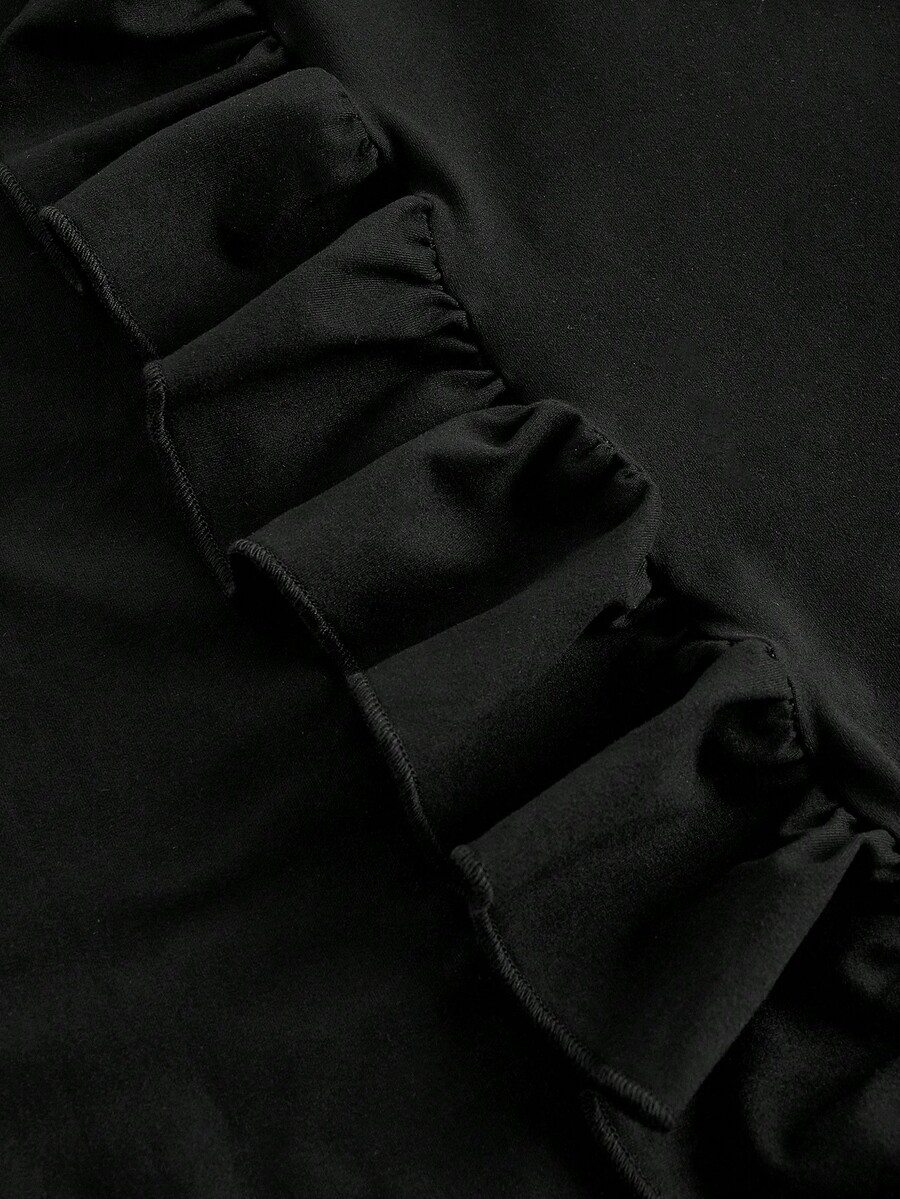 Goth Off Shoulder Ruffle Trim Split Thigh Dress