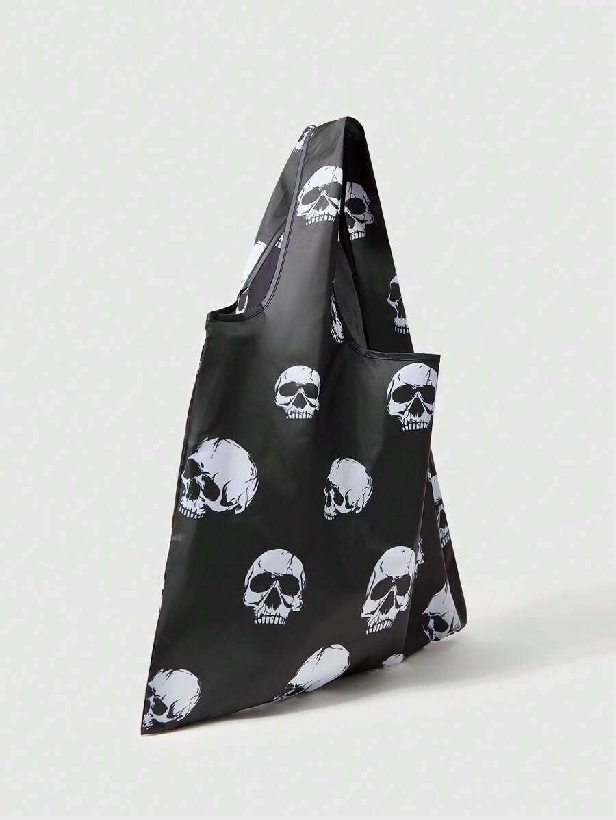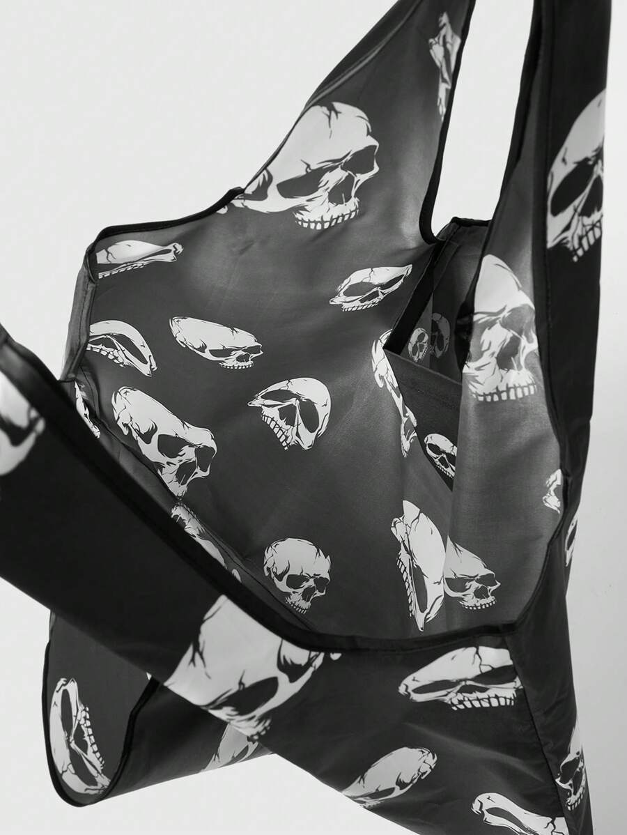 Goth Oversized Shopper Bag Punk Skull Print For Shopping