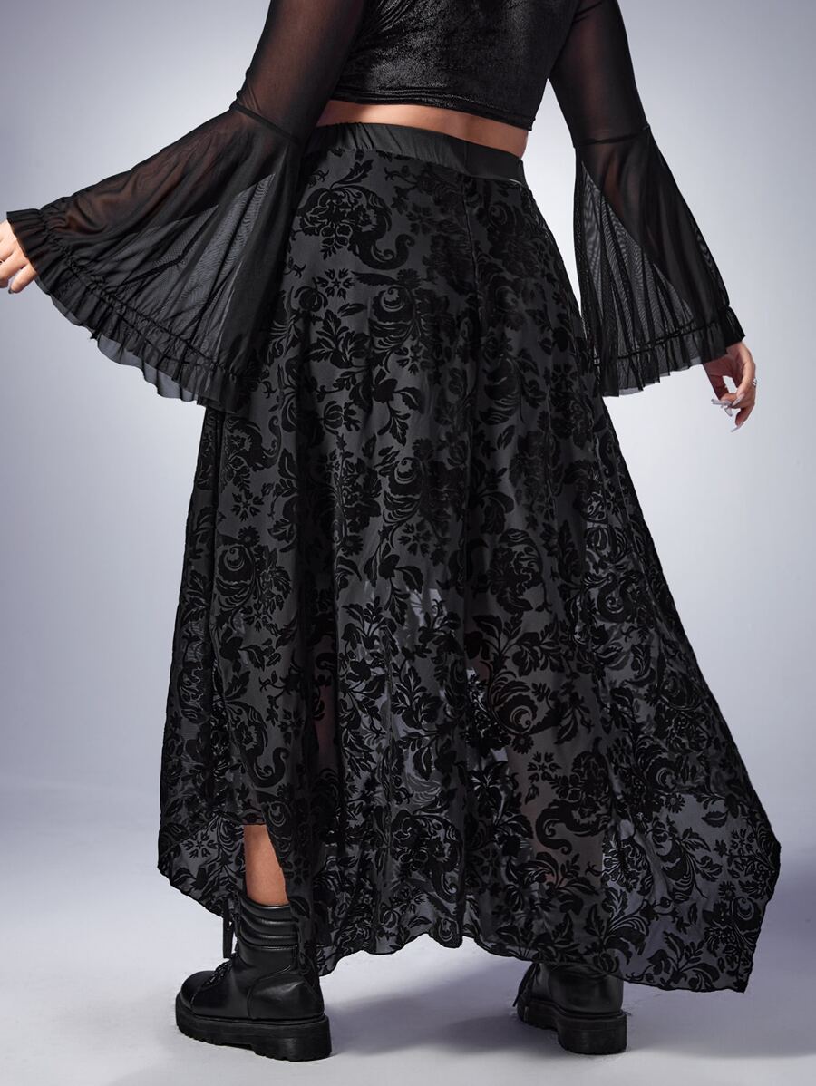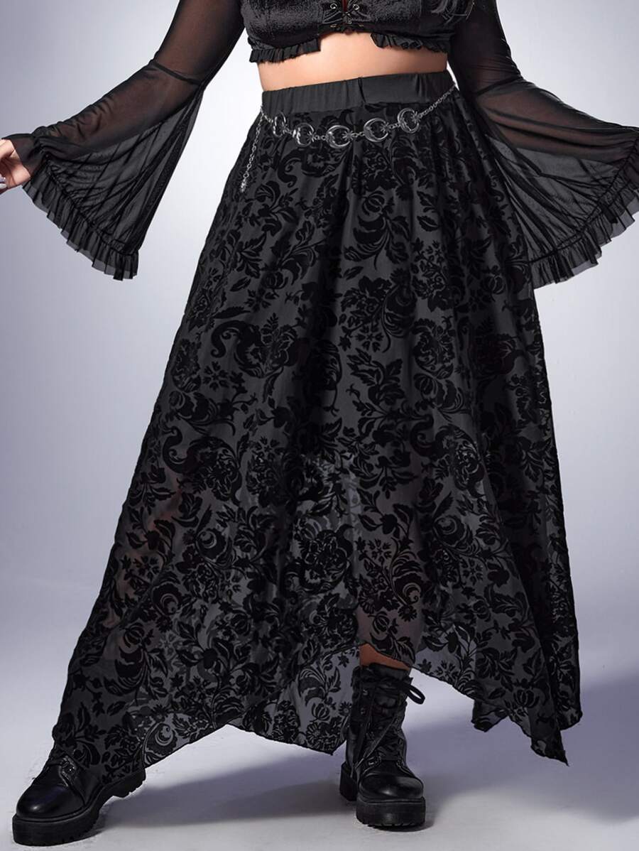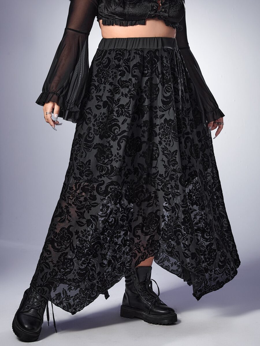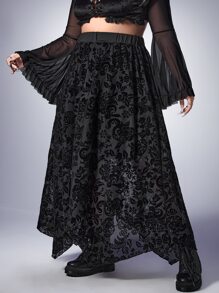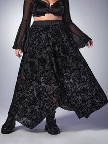 Goth Plus Floral Print Asymmetrical Hem Skirt