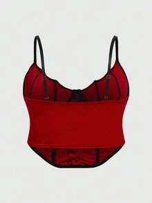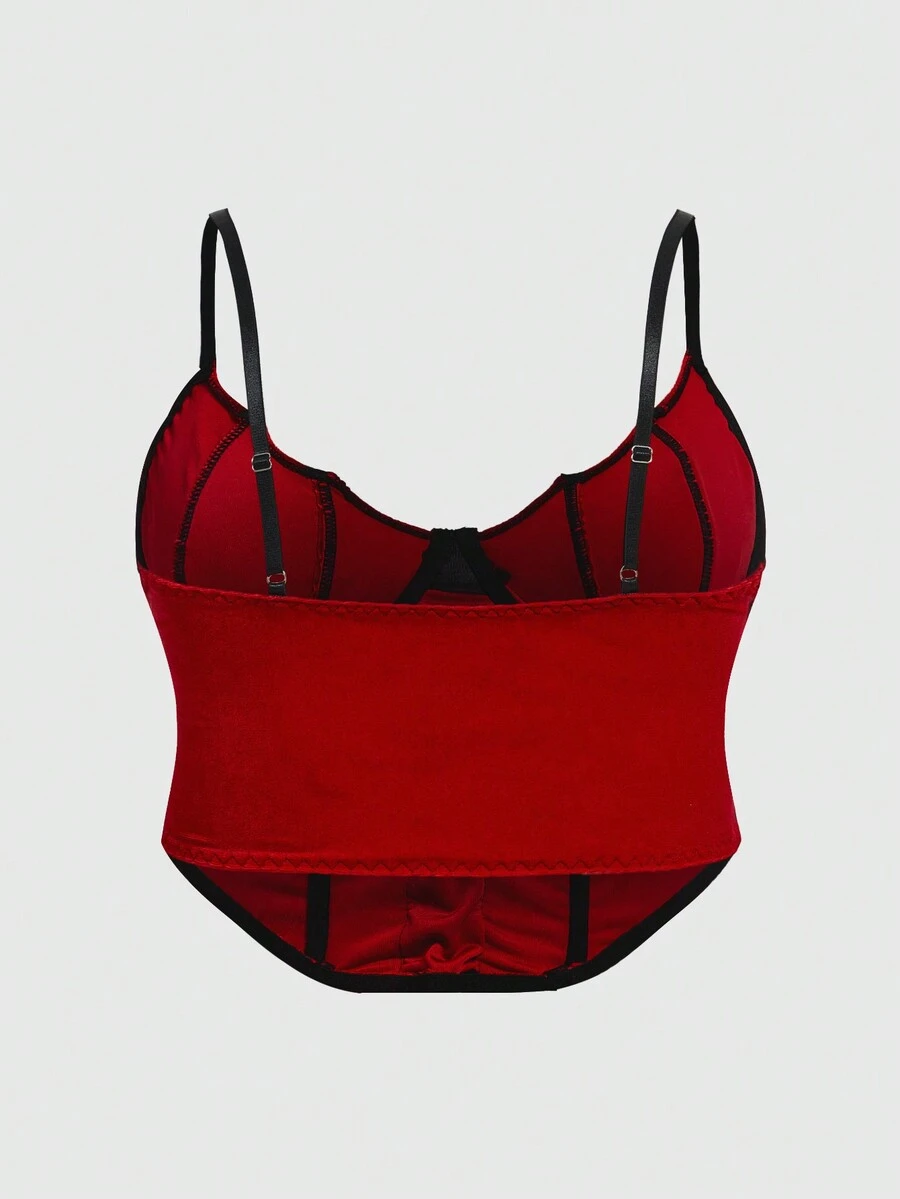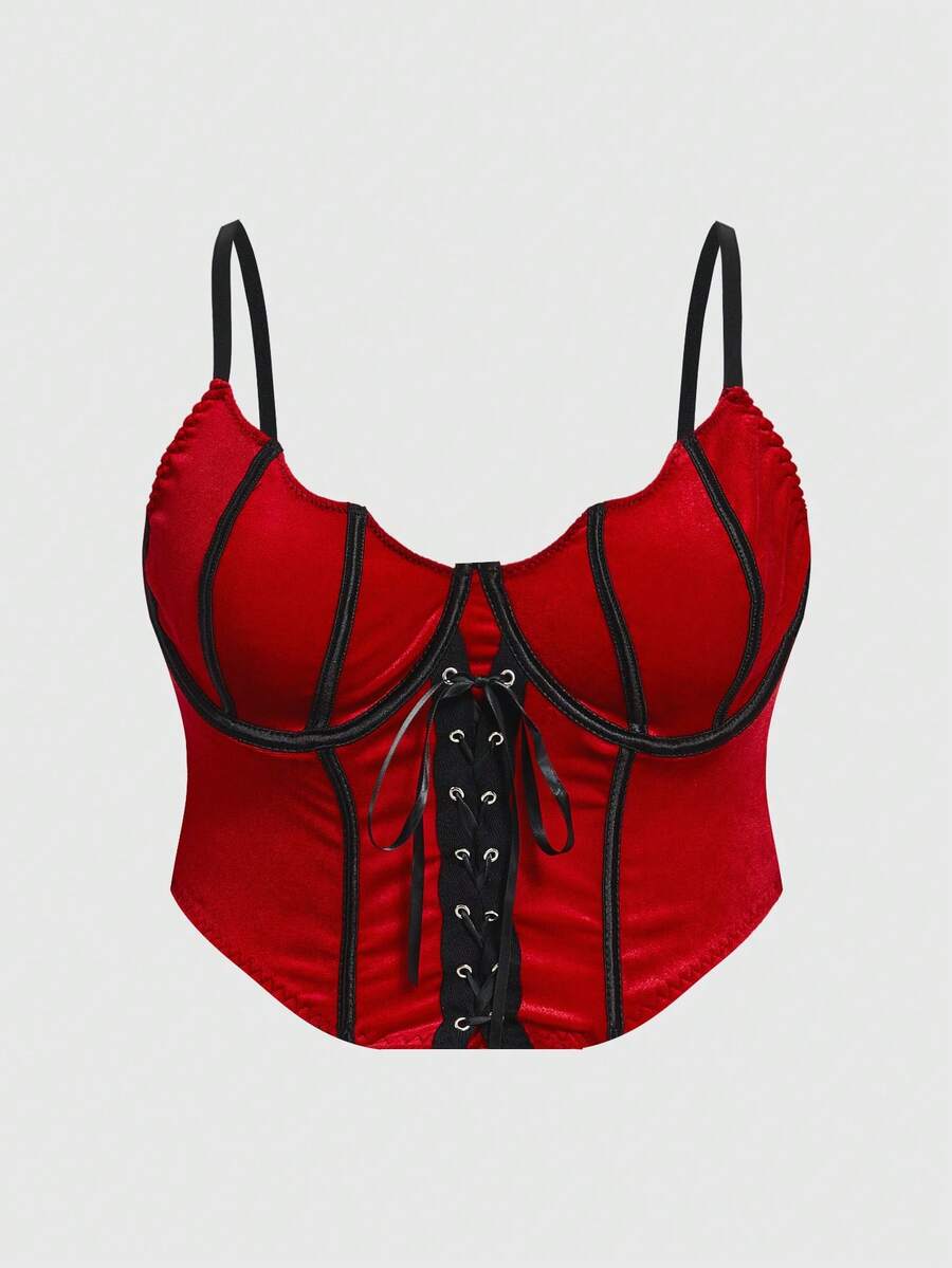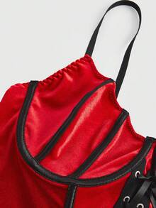 Goth Plus Lace Up Front Contrast Piping Cami Top