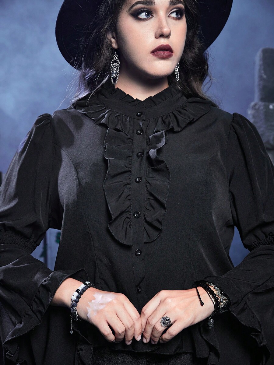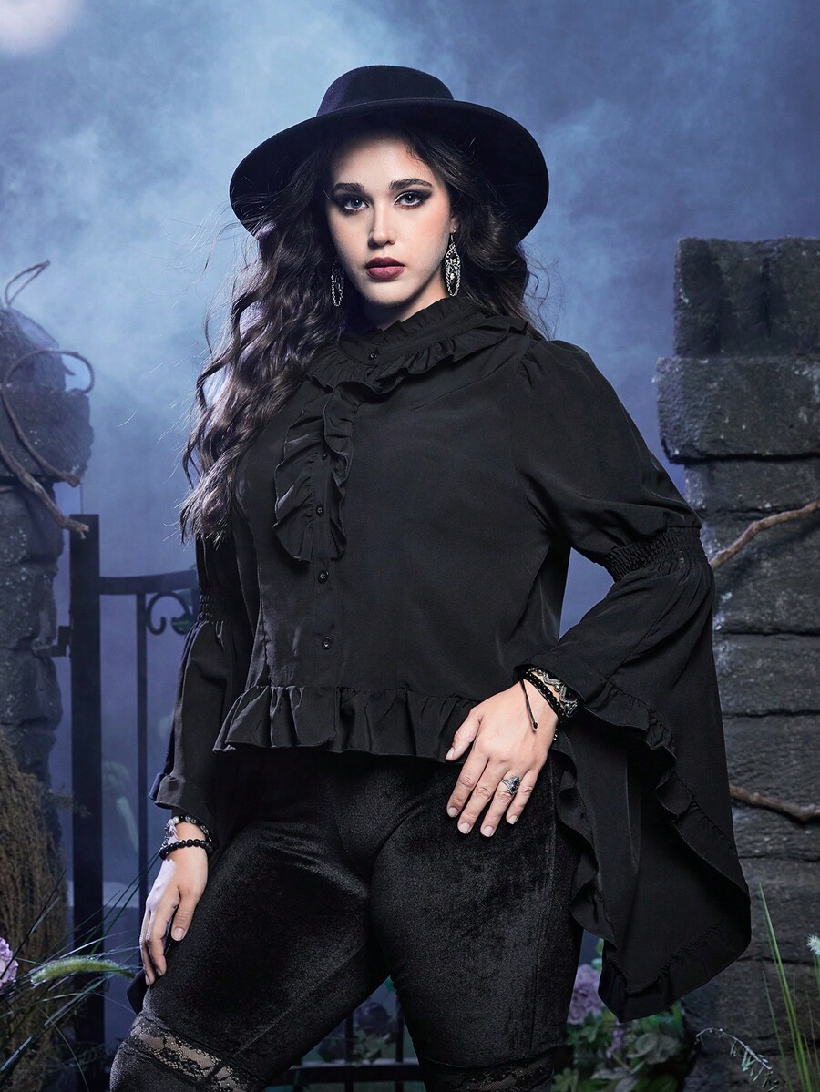Goth Plus Ruffle Trim Flare Sleeve Shirt